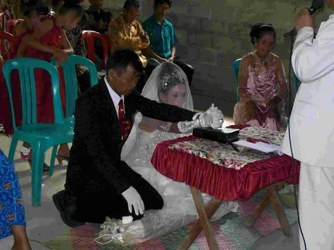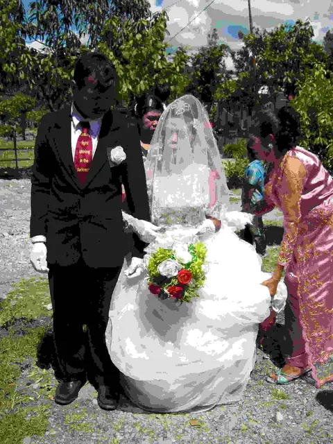 When the Behoa are married, there are three ceremonies: the traditional wedding ceremony, the blessing at the church, and the reception.